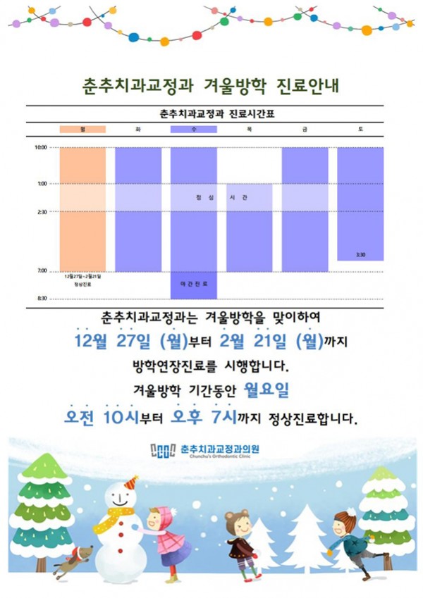 춘추치과교정과는 2021년 12월 27일부터 겨울방학진료로