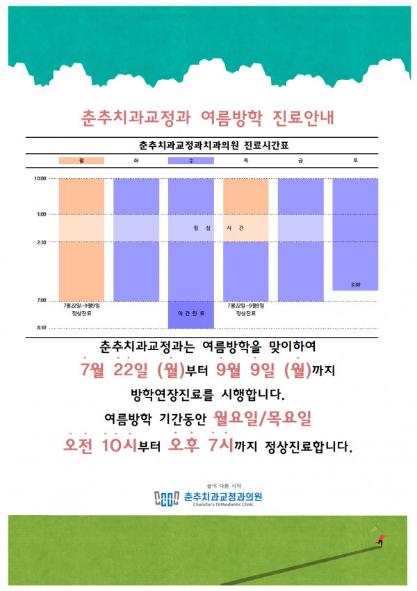 춘추치과교정과는 7월 부터 진료시간이 일부 조정됩니다.