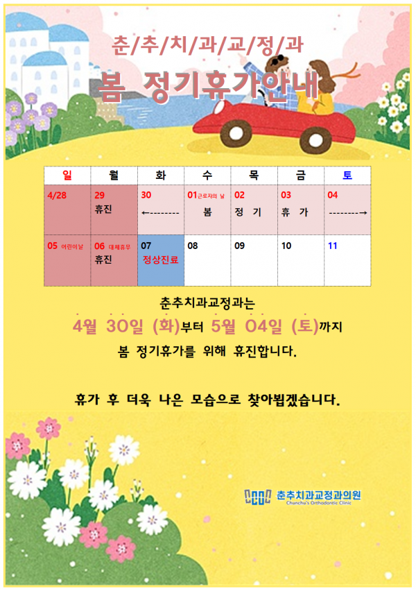 저희는 휴가 후 더 건강한 미소로 뵙겠습니다~